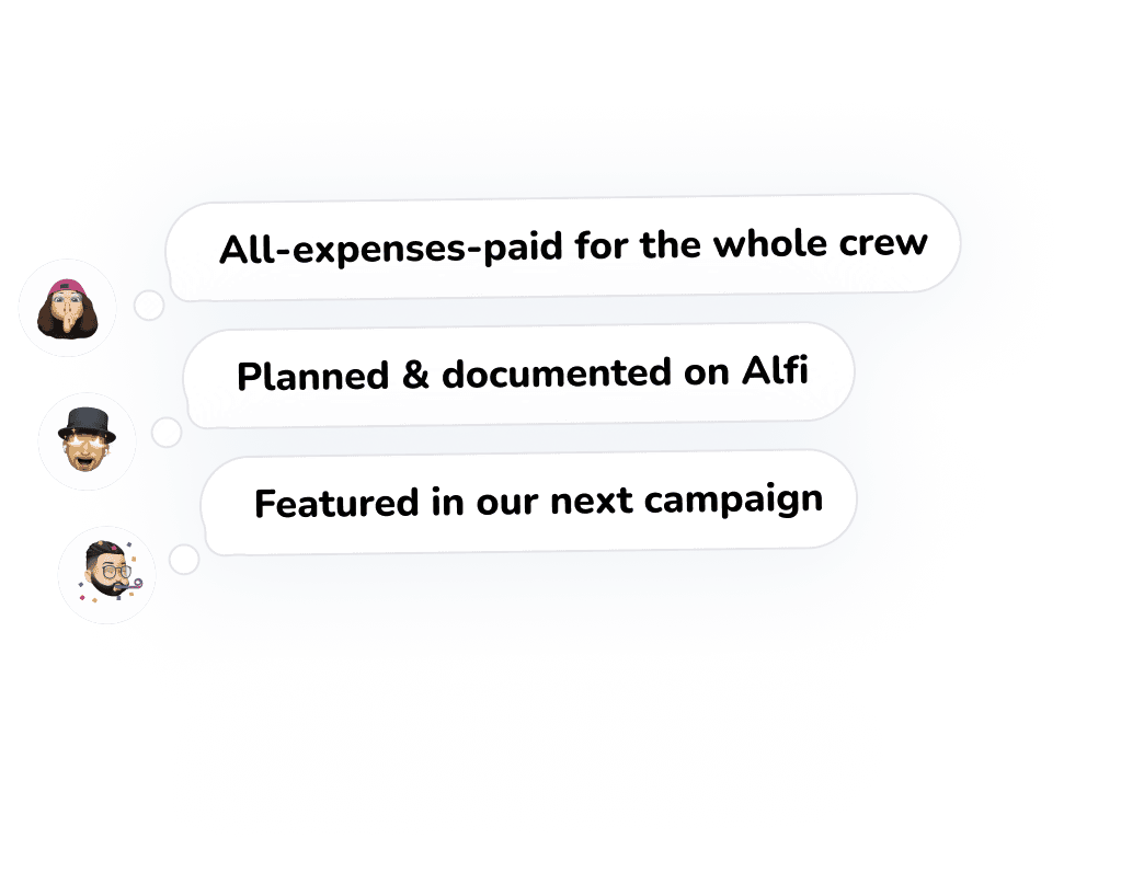 One winning group gets an all-expenses-paid trip for their entire crew. You plan and manage it on Alfi Calendar for the itinerary, Bill Splits to divvy up costs, the group chat to make it happen.
